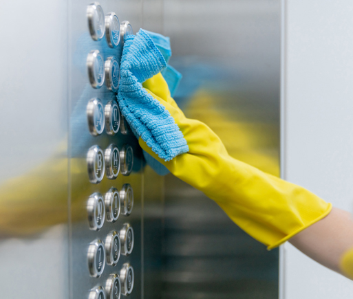 手すりやドアノブは多くの人が触れるため、ウイルスや細菌の付着リスクが高い場所です。特に汚物(嘔吐物)処理の際には、これらの物にウイルスが付着する危険性があるため、徹底した消毒が必要です。手すりやドアノブの表面を十分に拭き取ることで、ウイルス付着リスクを低減させる可能性があります。普段から1日1回以上の消毒を心掛け、嘔吐物の処理後や感染症が流行している時期には、清掃頻度を見直すことをおすすめします。