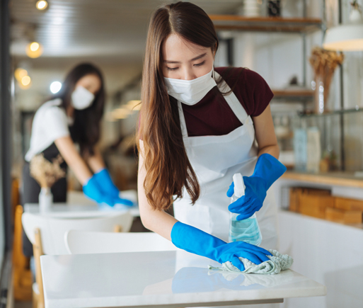 また、日常的な清掃や消毒も重要です。エレベーターのボタン、テーブルや椅子、厨房やトイレのドアノブなど、手が触れやすい場所は特に重点的に消毒してください。飲食スペースや休憩所では、こまめな換気とともに、消毒・清掃の頻度を高めることが効果的です。衛生管理の一貫性を保つためには、清掃・消毒のスケジュールを作成し、スタッフ全員で共有することが重要です。