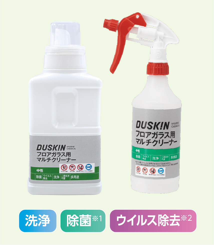 除菌作業をムリなく続けていくためには、除菌剤選びが大切なポイント。洗浄効果がある1本を選べば、拭き掃除と除菌作業が効率的にでき、スタッフの負担軽減につながります。