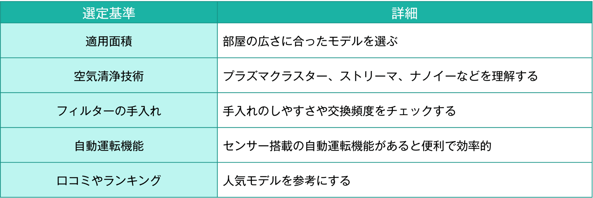空気清浄機を選ぶ際には機能をよく理解し、使用環境や健康状態に合った機能を持つモデルを選ぶことが重要です。手入れのしやすさやフィルター交換の頻度も考慮し、長く快適に使える製品を選びましょう。