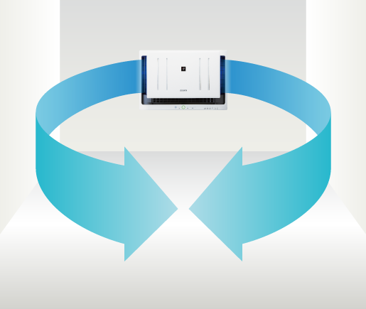 空気清浄機の設置場所に応じてルーバーの向きを調節することで、室内の隅々までより効率的に清浄な空気とともに、加湿効果を届けることができます。単一方向への送風は循環効果が発揮しにくく、2方向への送風は効果的な気流が作られ、効率よく室内全体を加湿することができます。空気清浄機を併用する場合は、設置場所やルーバーの向きなど気流の効果も考慮しましょう。