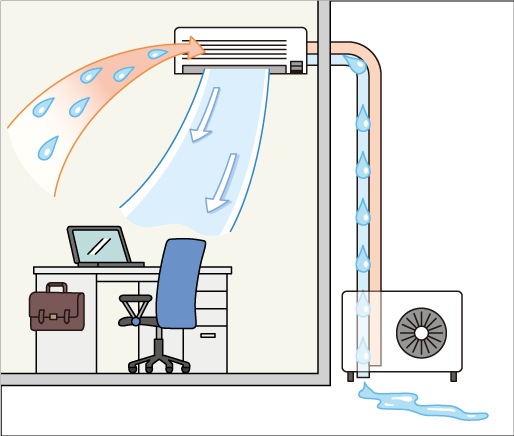 室内の乾燥は、冬だけに限ったことではありません。夏場は営業時間中、常にエアコンが稼働している職場も多くなります。エアコンは本体に取り込んだ空気を熱交換機で急激に冷やし、熱とともに水分も外に放出してしまいます。そのため、室内の空気中の湿度が下がり乾いてしまうのです。意外な落とし穴ともいえる夏の乾燥対策にも、職場を潤す加湿器の使用が効果的です。
