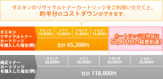 純正品トナーの約半分のコストで大幅な経費削減が可能!