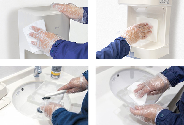 4週間に1回レンタルの際にダスキンの担当者が本体のメンテナンスを実施し、ハンドドライヤーをスッキリキレイに。