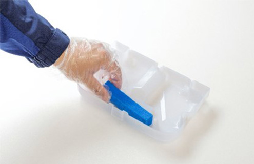 水受けトレイ内に抗菌スポンジを設置し、ニオイや汚れのもととなる細菌を抑制。4週間に1回交換することで常にキレイな状態を維持します。また、4週間に1回レンタルの際にダスキンの担当者が本体のメンテナンスを実施し、ハンドドライヤーをスッキリキレイに。