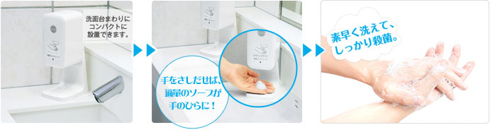 手を差し出すだけで、泡がシュッ!